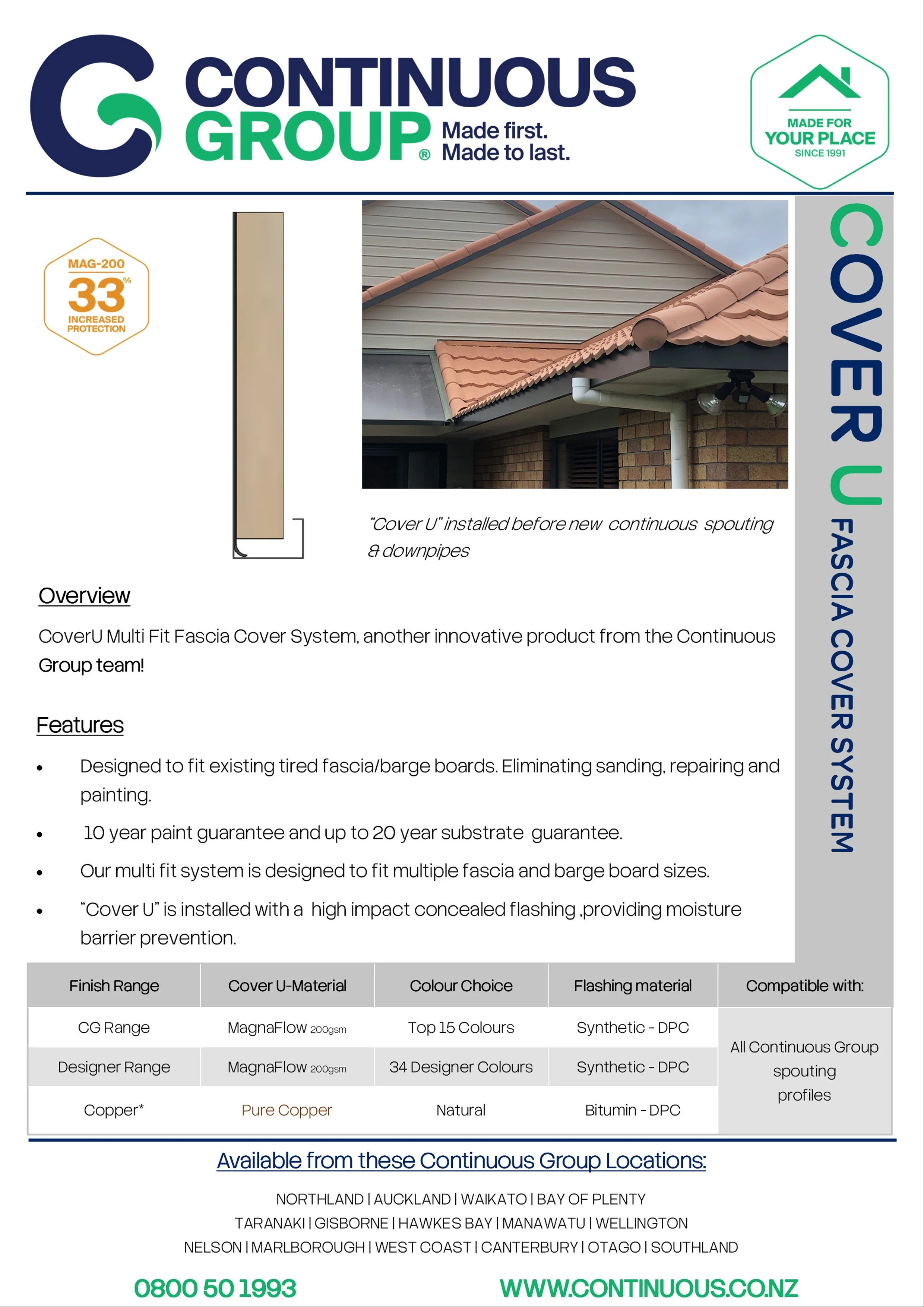 Scroll down to see images of Cover U fascia cover by Continuous on a range of Kiwi homes, along with colour and finish options and downloadable technical files.